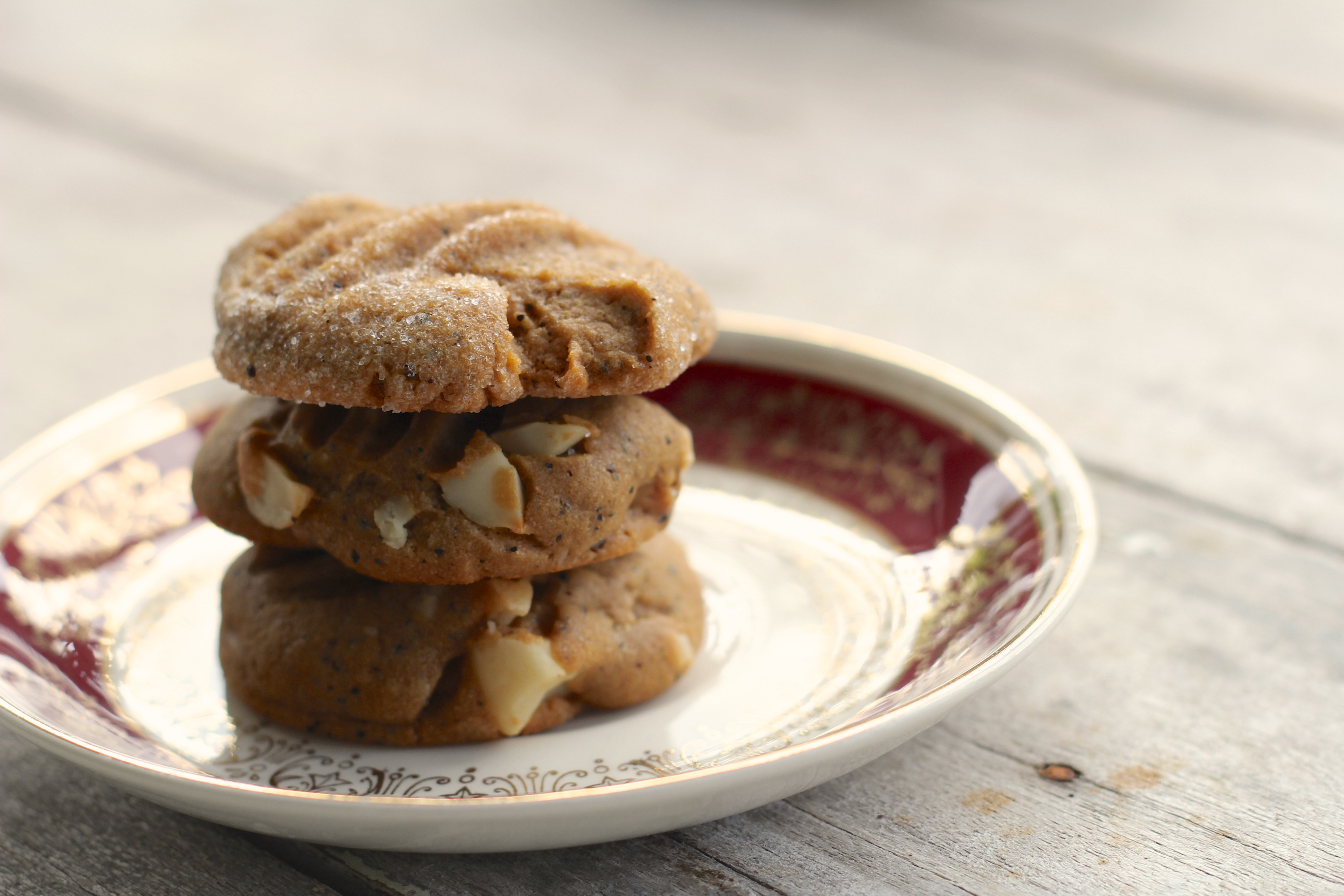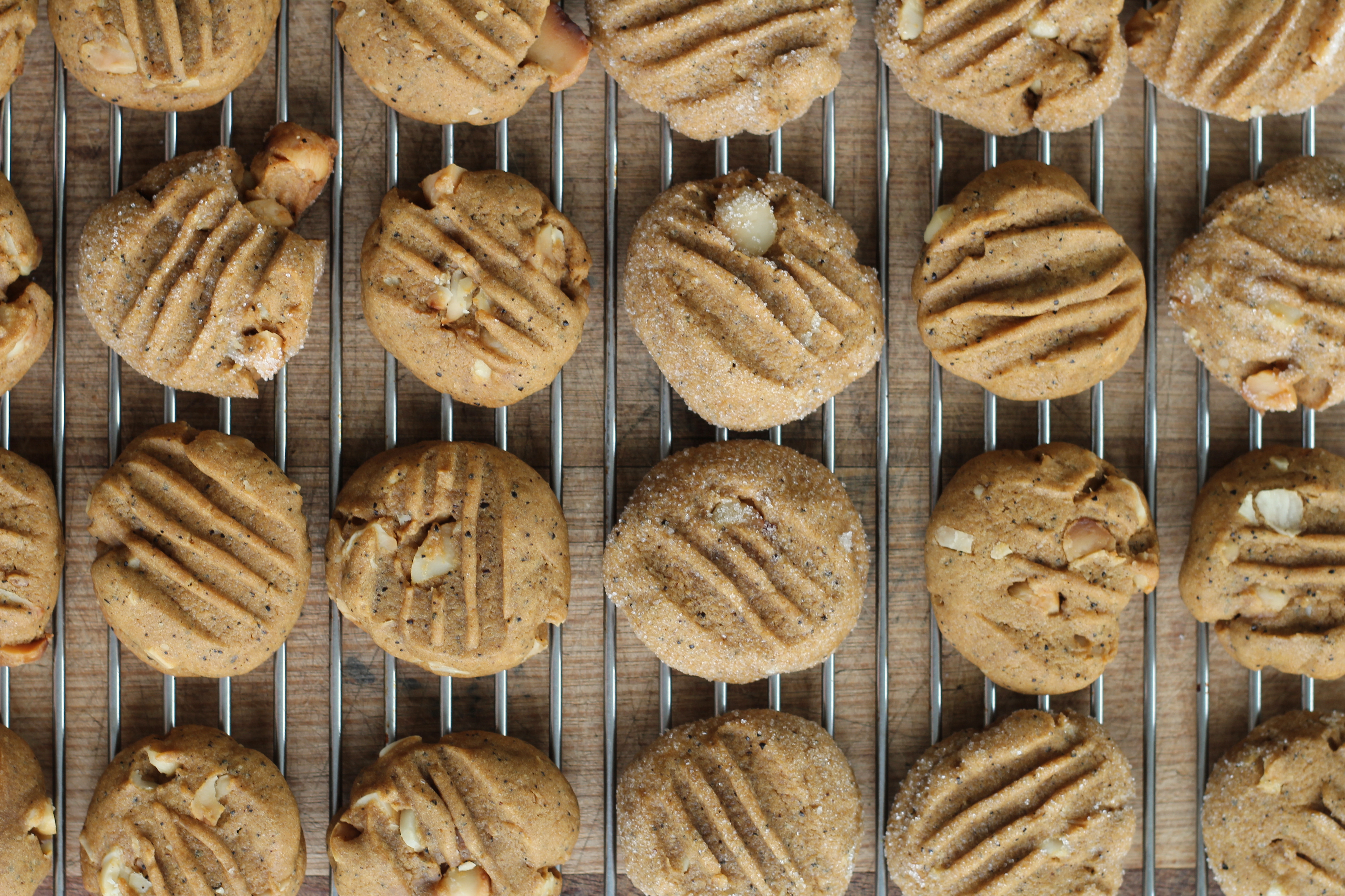 The taste of wattleseed is somewhere between coffee and dandelion root, but muted. These cookies are subtle – not too sweet, delightfully chewy, and laden with macadamia crunch. They’re a good afternoon tea cookie with a mug of earl grey, or late-night dessert with a cold glass of milk.