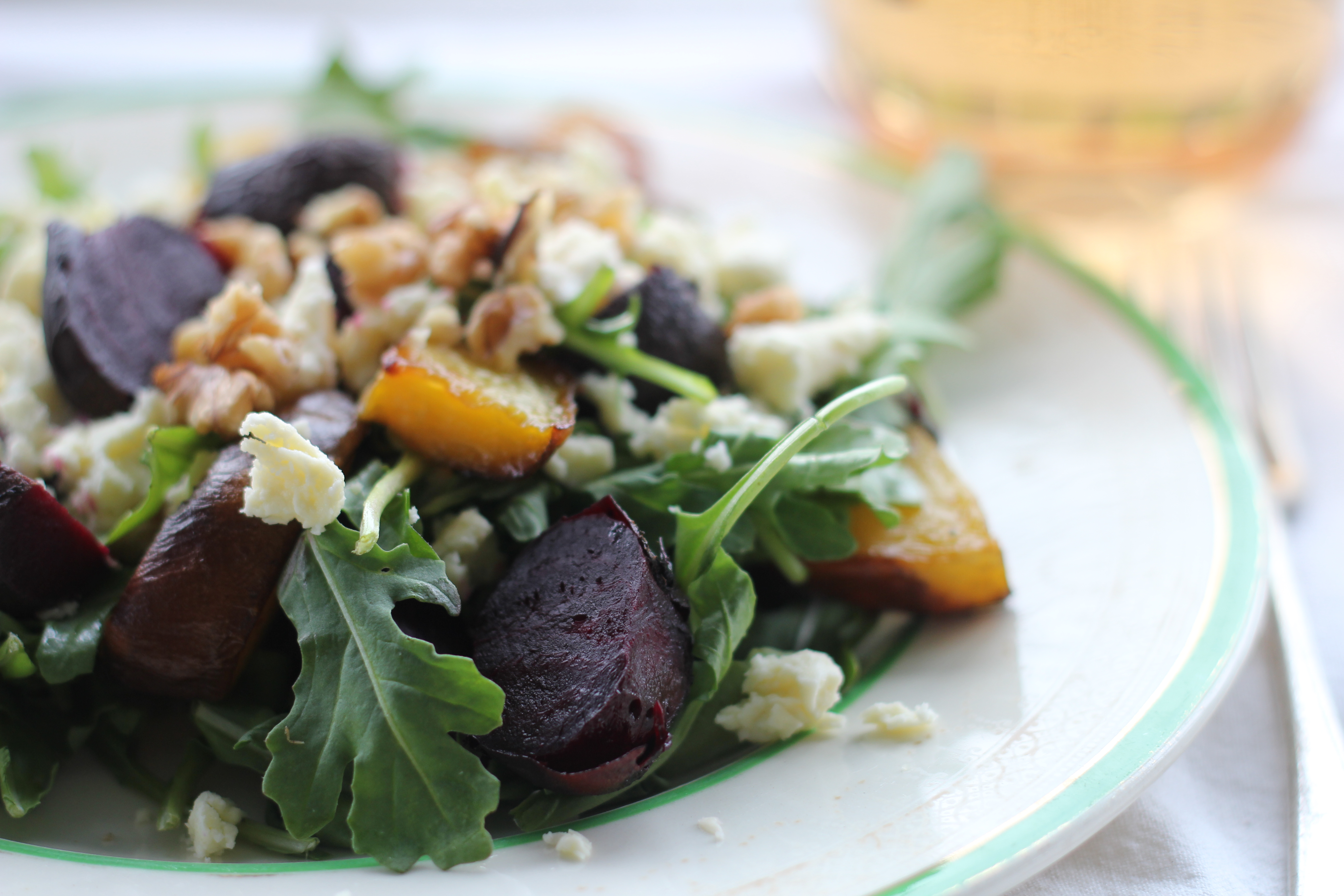 Notes: this salad is flexible – if you can’t find golden beetroot, use extra purple beetroot, or even throw a sweet potato in there. Likewise, if you don’t have baby beets, the large ones will work just fine.