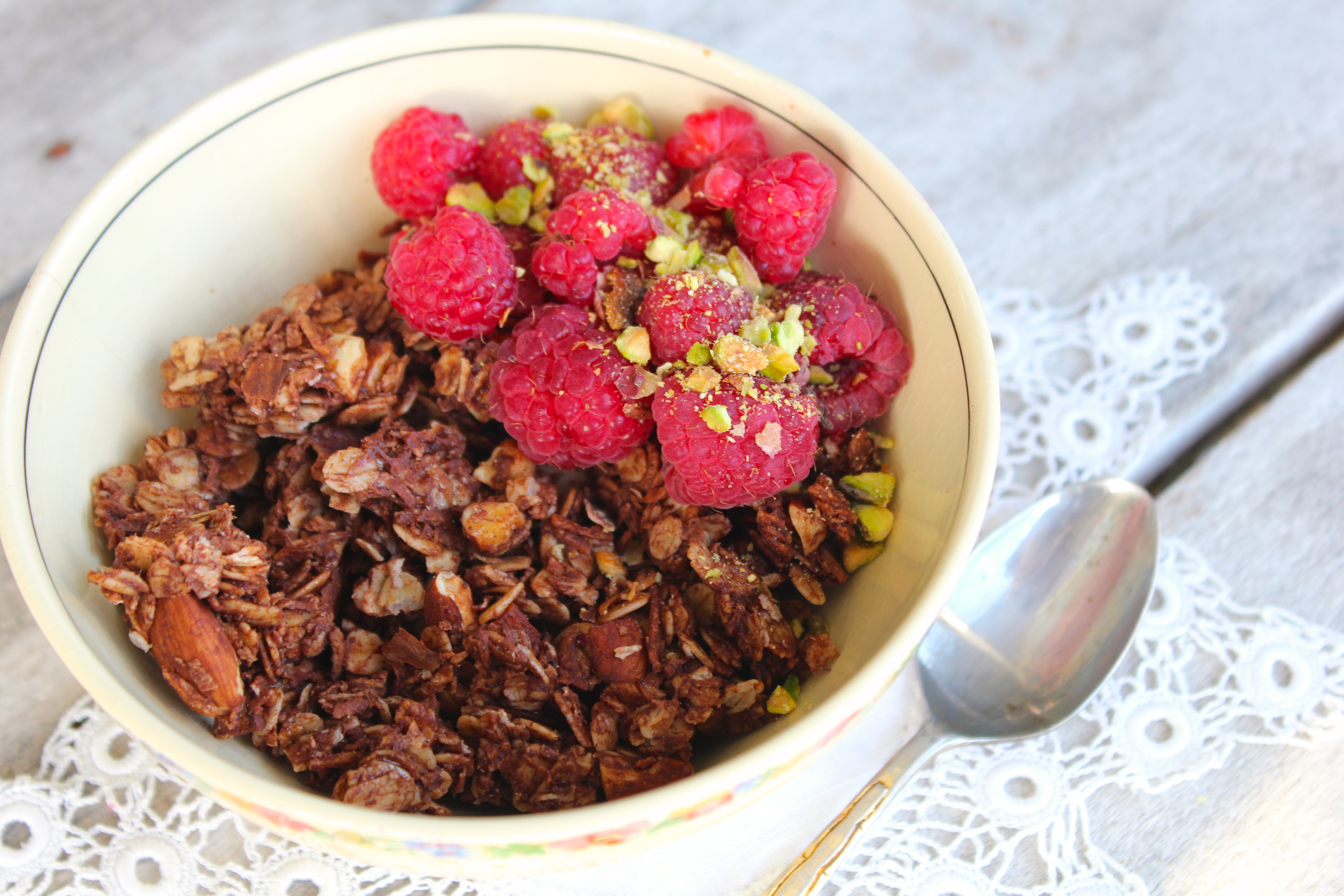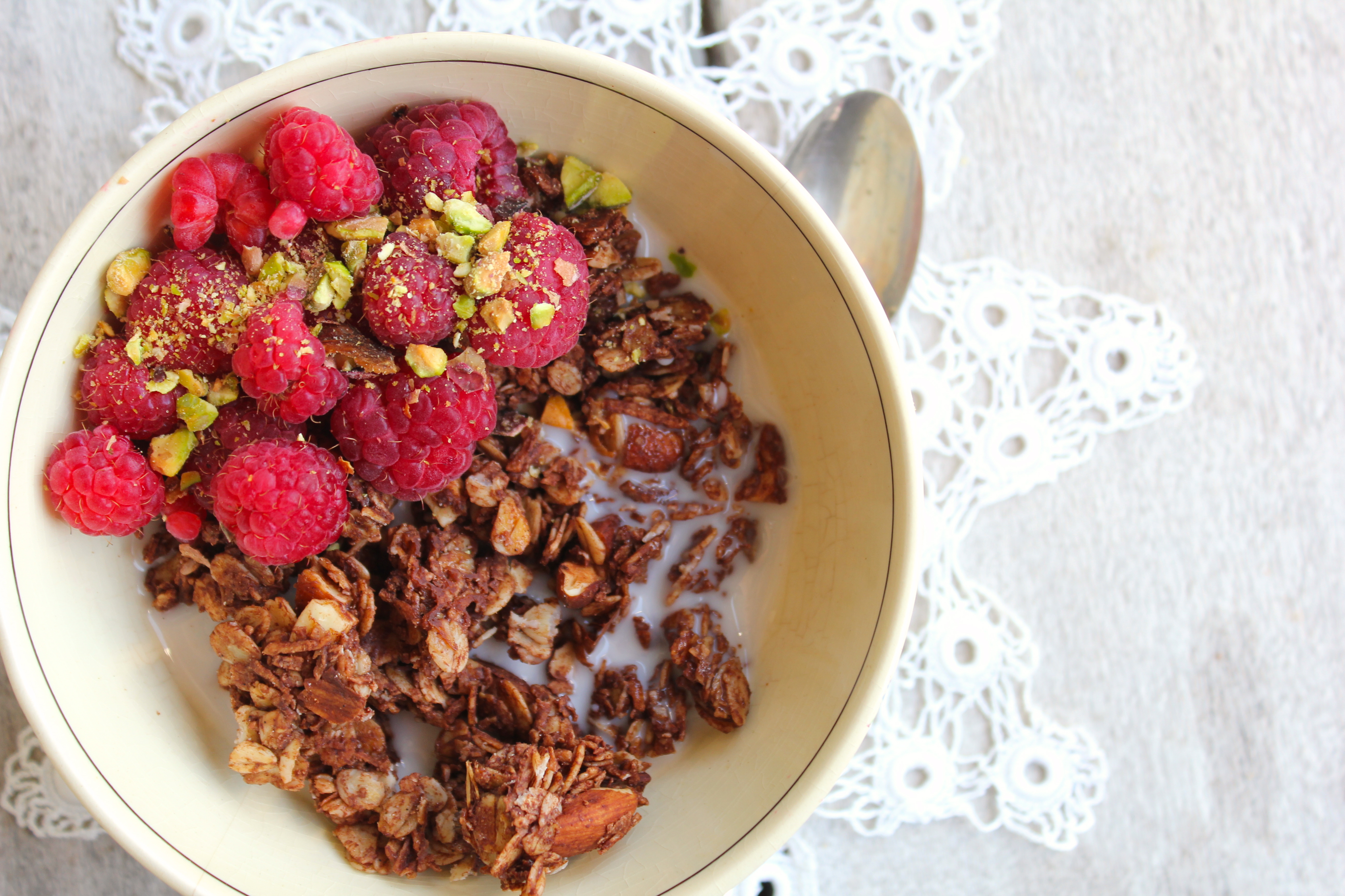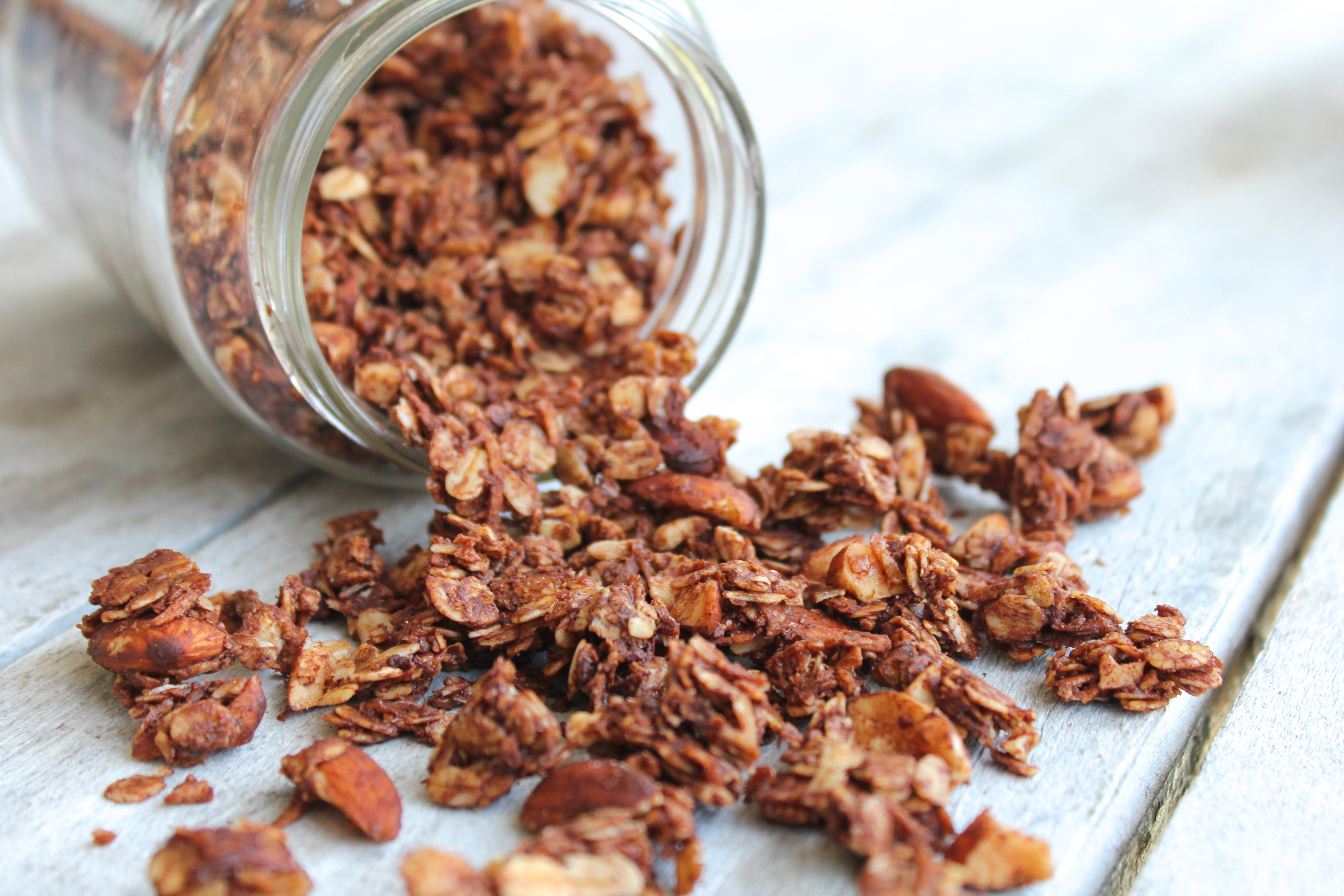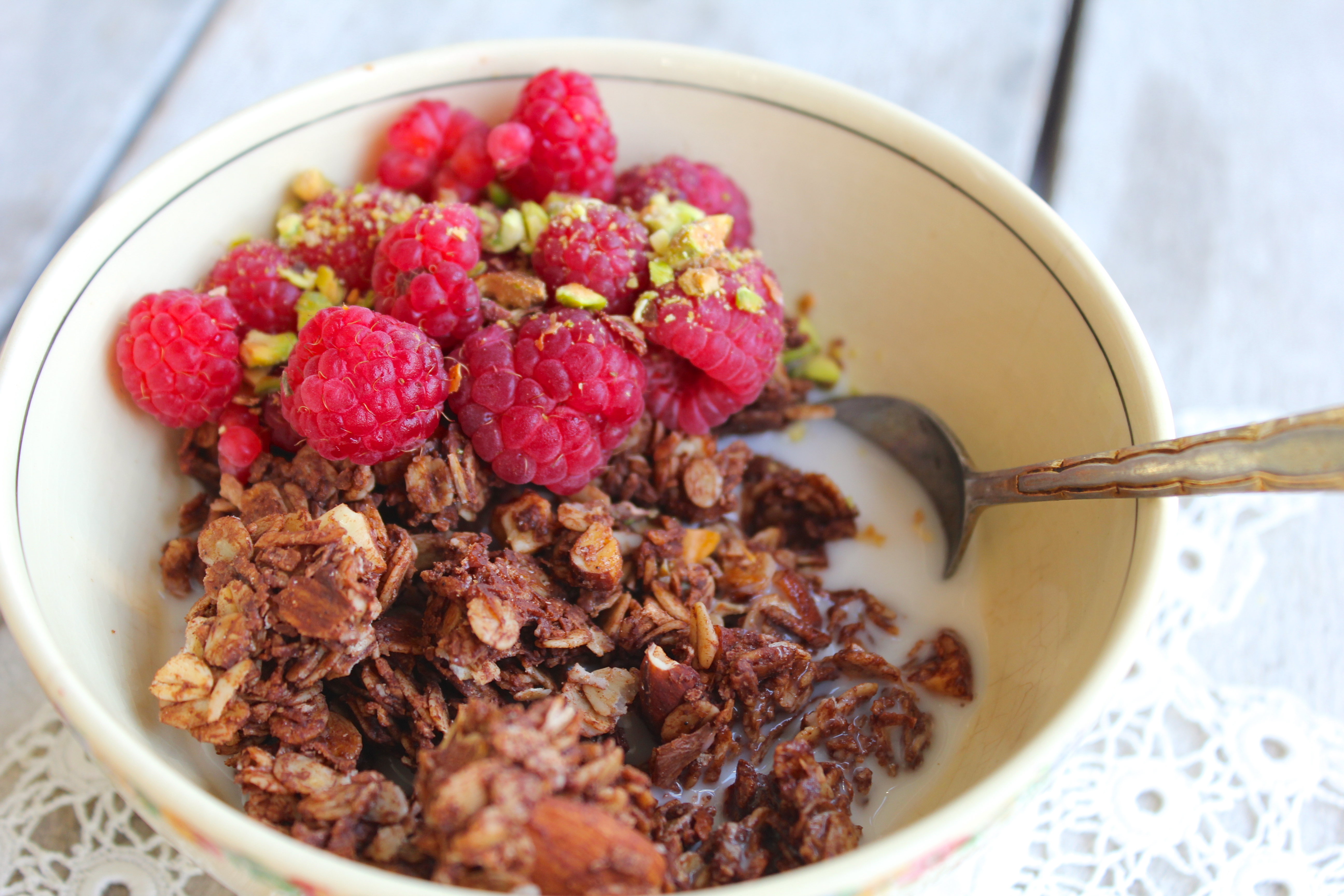 Chocolate granola is a really nice treat, especially when it’s so easy like this. And I love that you use brown rice syrup in your granola too. I think it makes it stick together better.