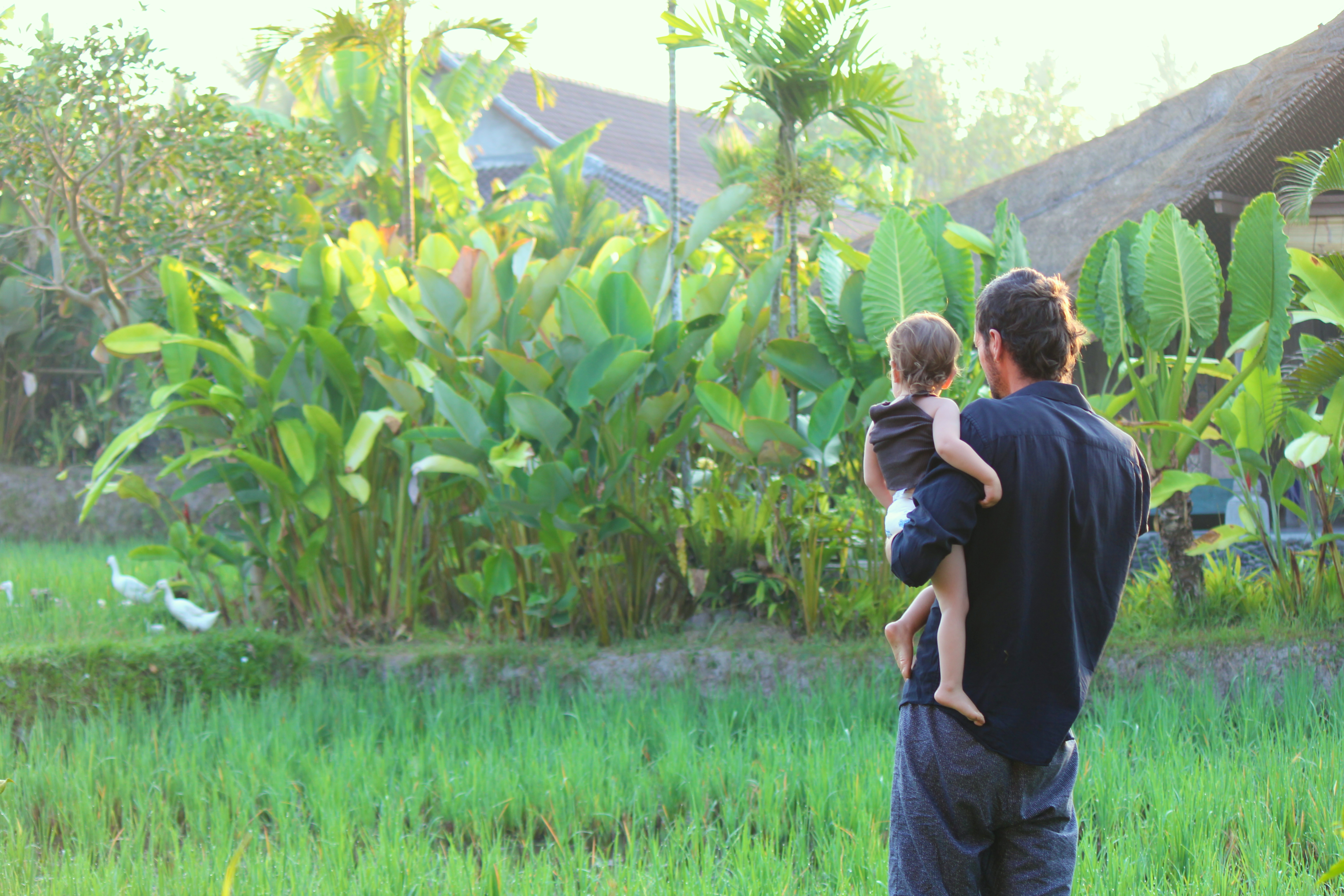 These days Ubud is all bright green rice paddies and heavy scooter traffic; raw food cafes and roast suckling pig; masses of tourists bussed in for the day from their beachside resorts and hippie travellers staying awhile; yoga studios and wooden penis bottle openers; hindu temples and high-end fashion shops; a family of five piled on a scooter and an old man with a machete hard at work in the fields.