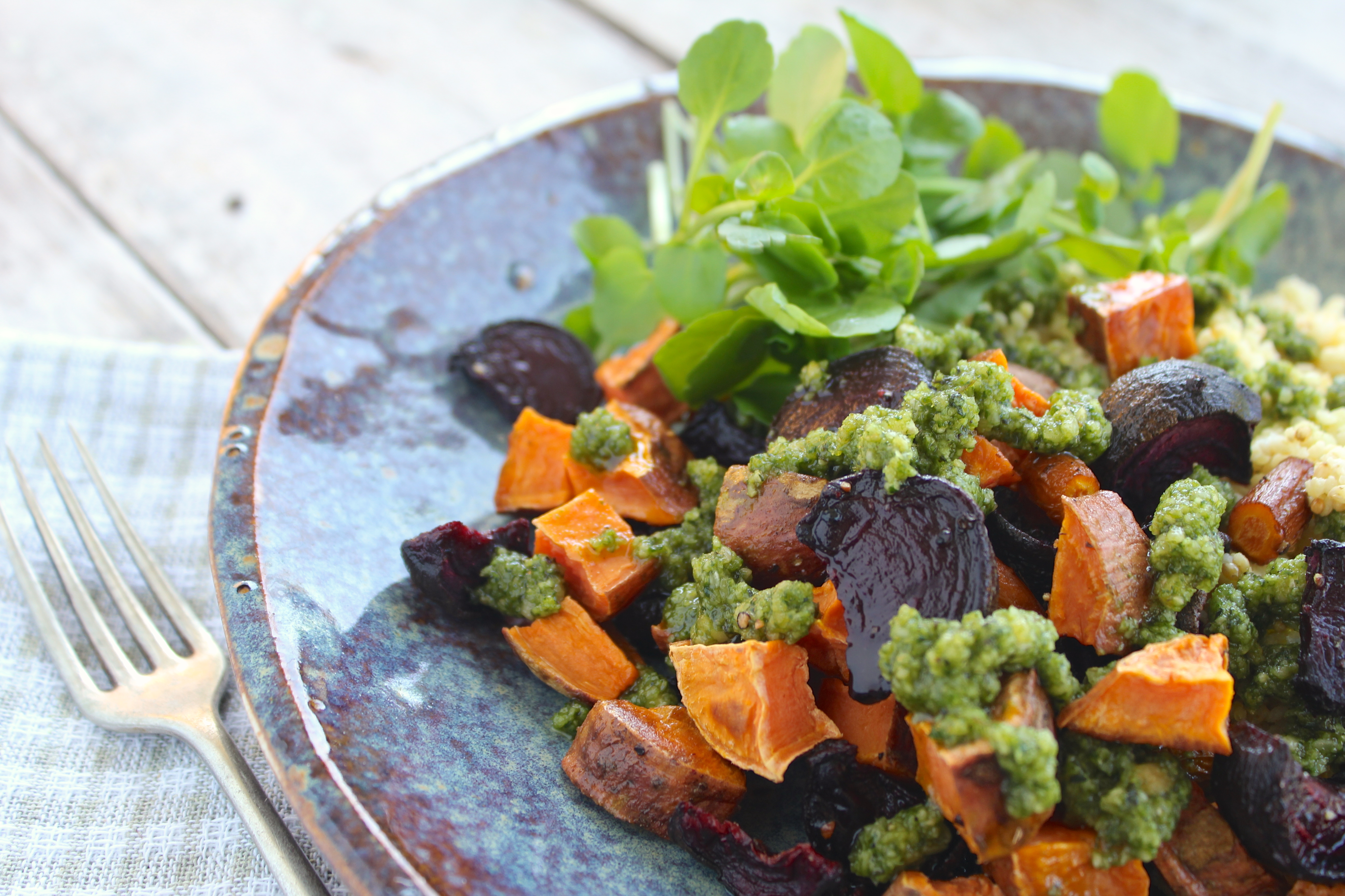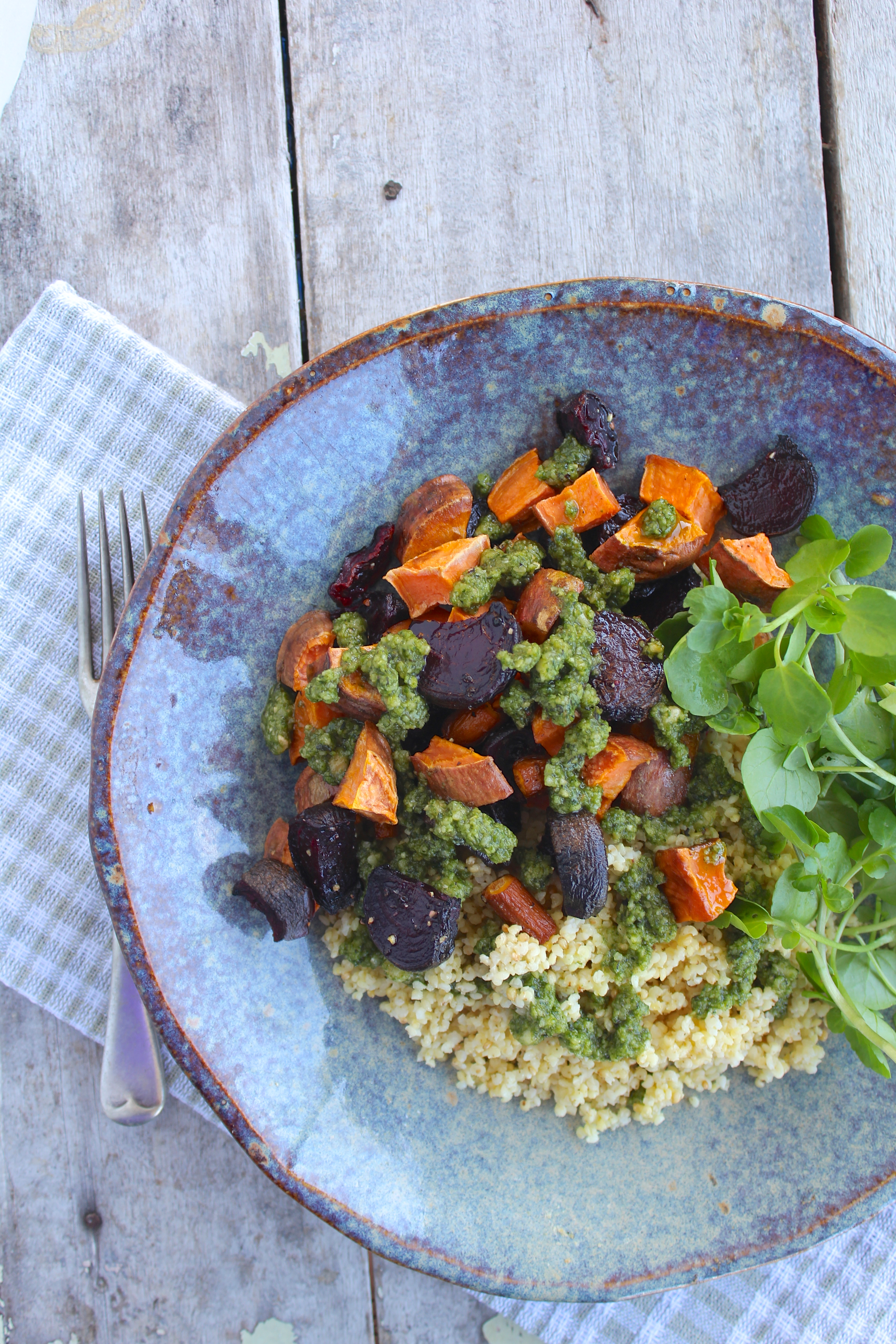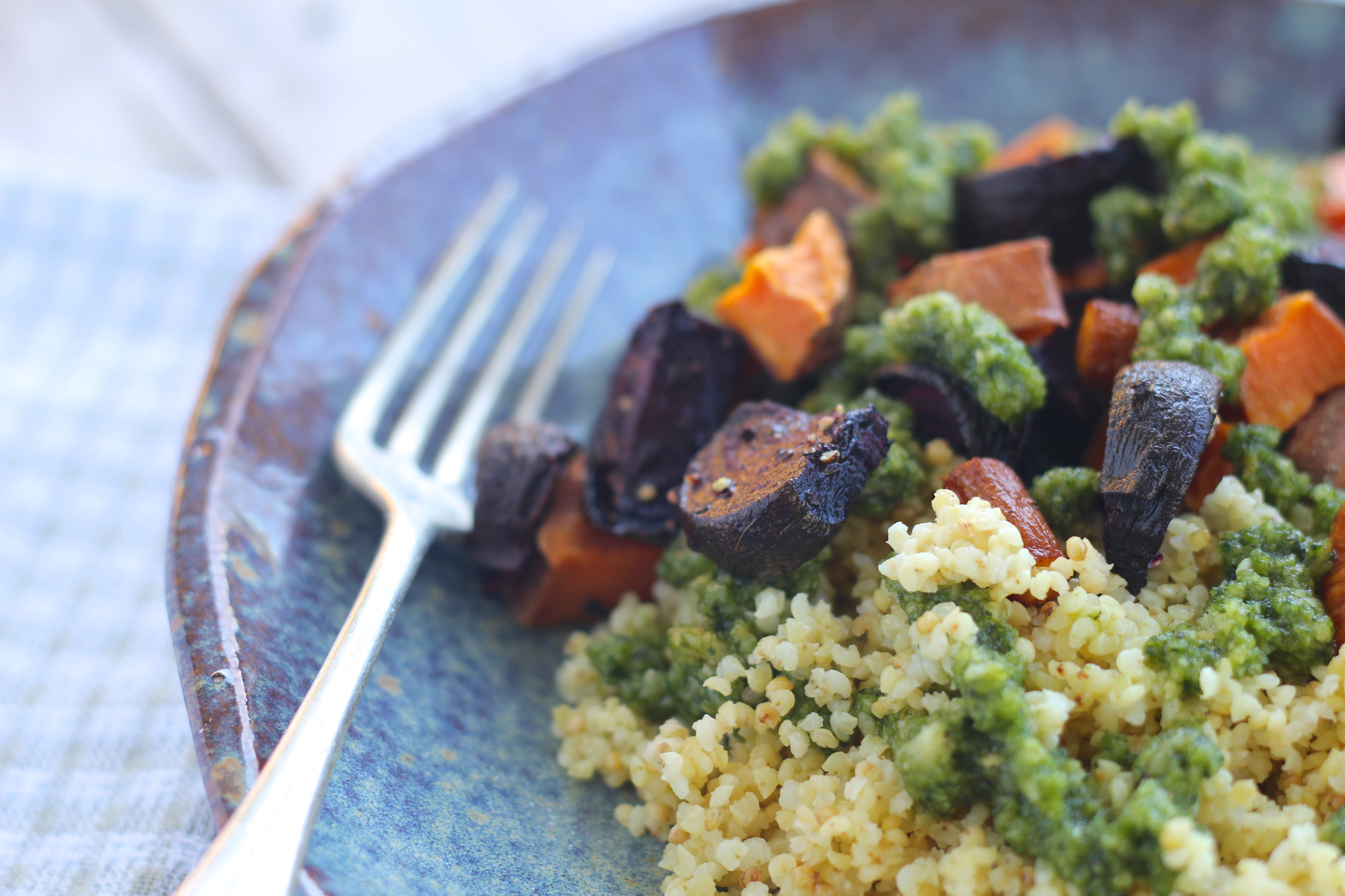 roast-veges-millet-tyme-lime-pesto-fork