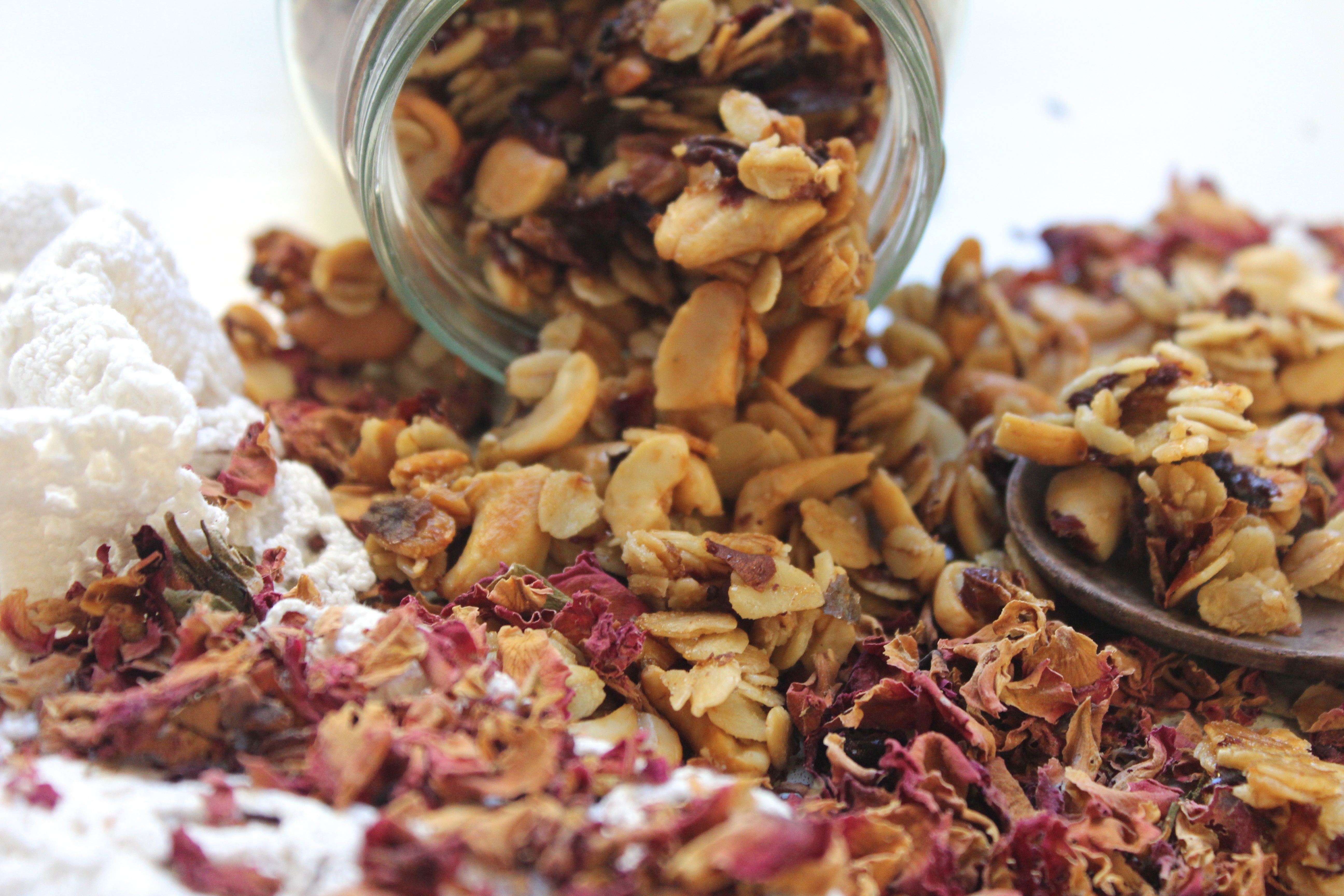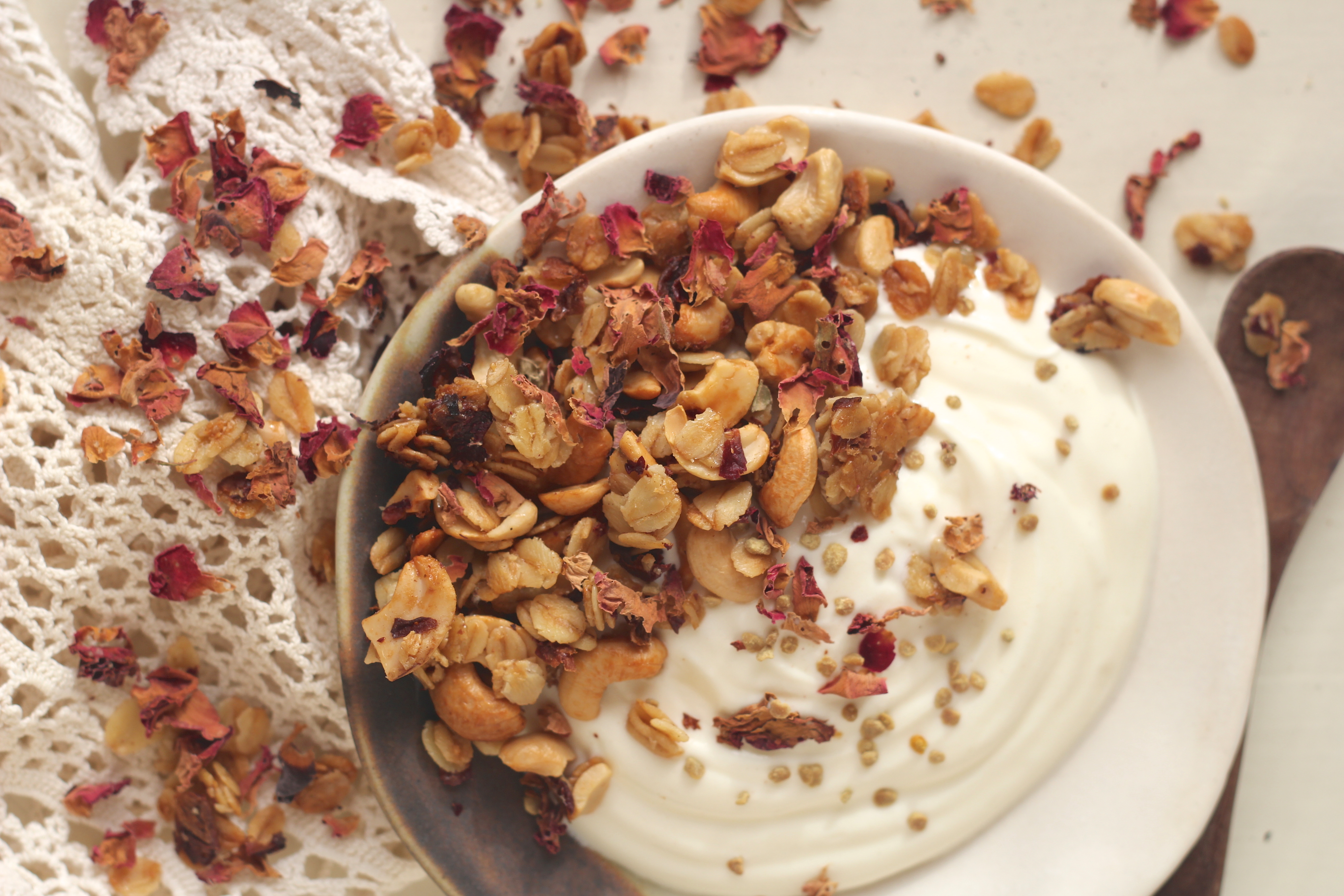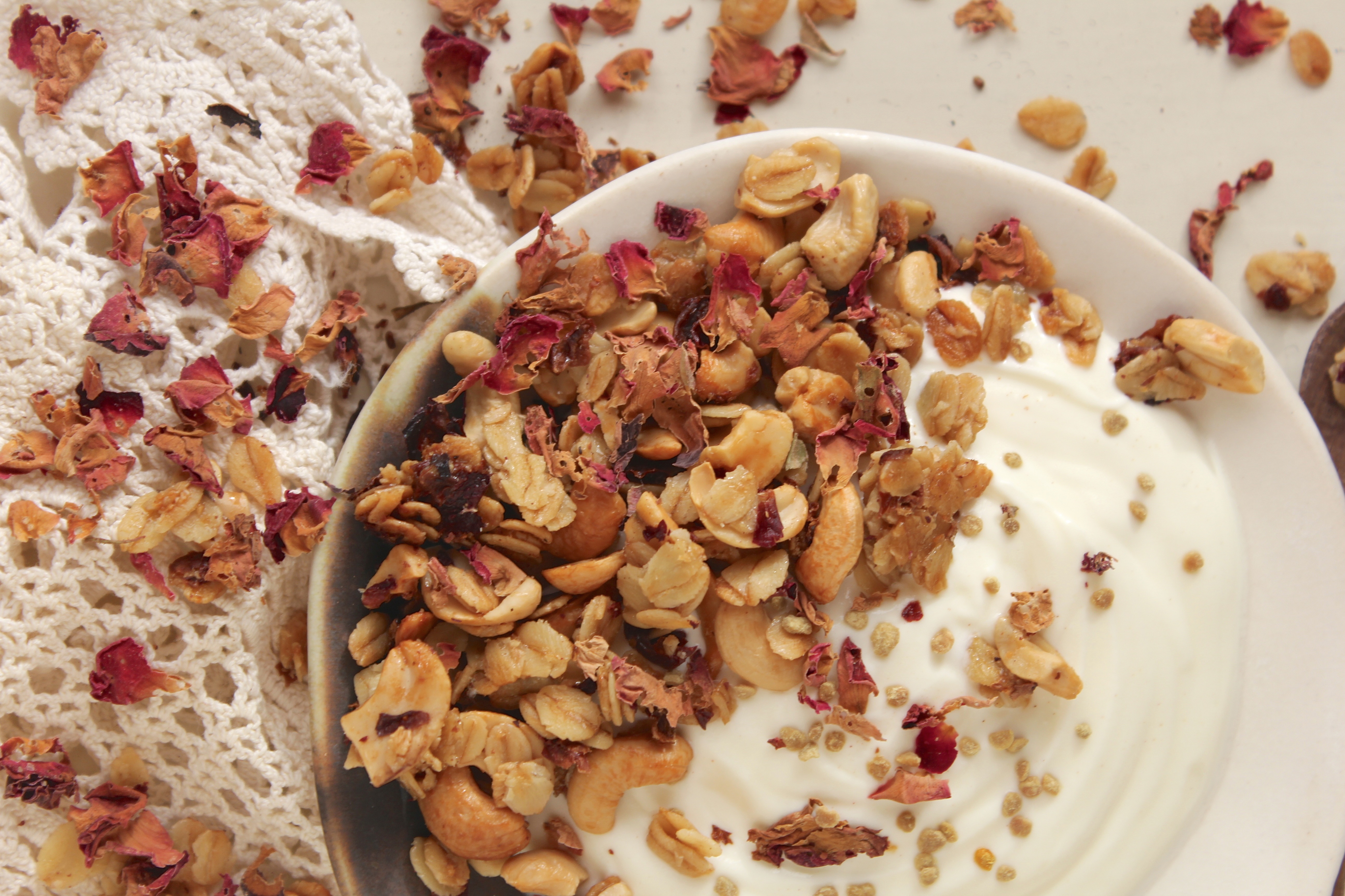 rose-cashew-granolarose-cashew-granola-yoghurtrose-cashew-granola-vertical-closeuprose-cashew-granola-pollen
