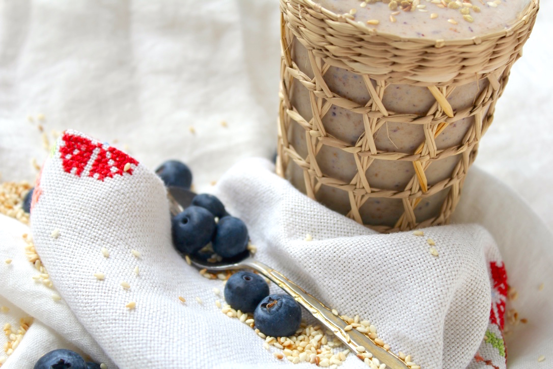And this smoothie looks so unusual….in a good way. 😉 I haven’t thought to combine dried figs and blueberries and sesame. No doubt it’s delicious.