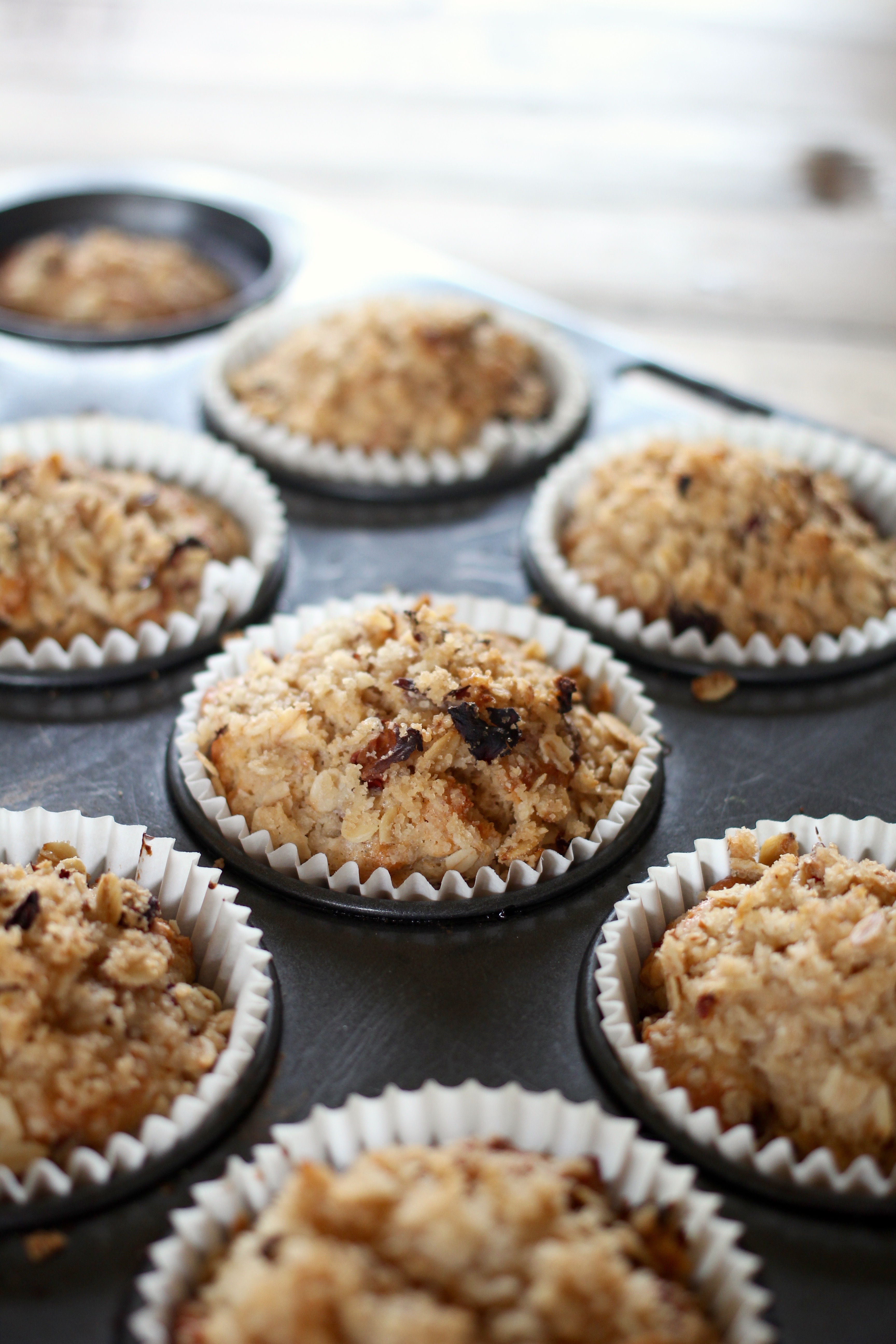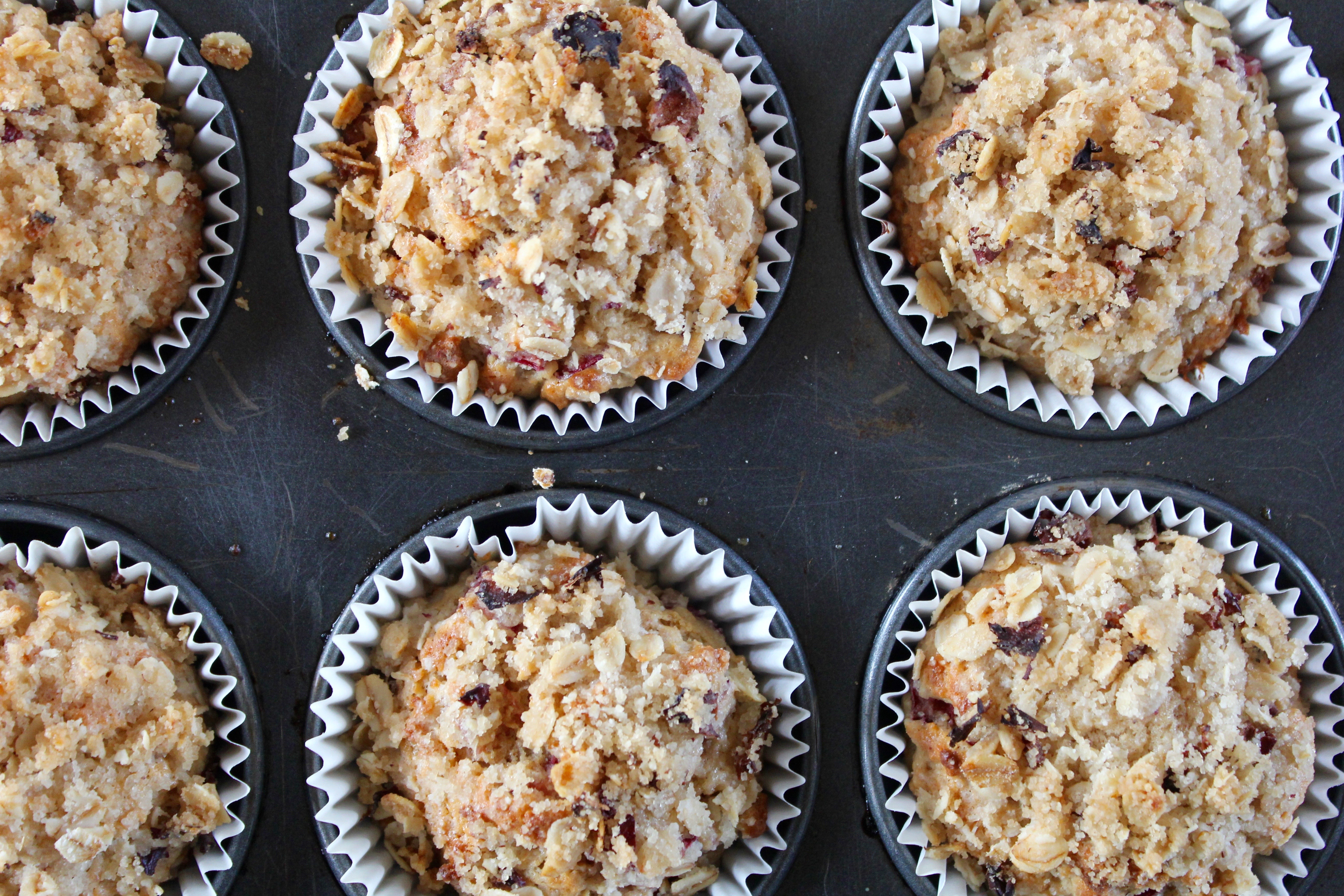 Divide the muffin batter equally between twelve paper cases, filling each one to about 2/3 full. Add a generous amount of streusel to the top of each muffin (about a tablespoon), then bake in the preheated oven for 15 – 18 minutes.