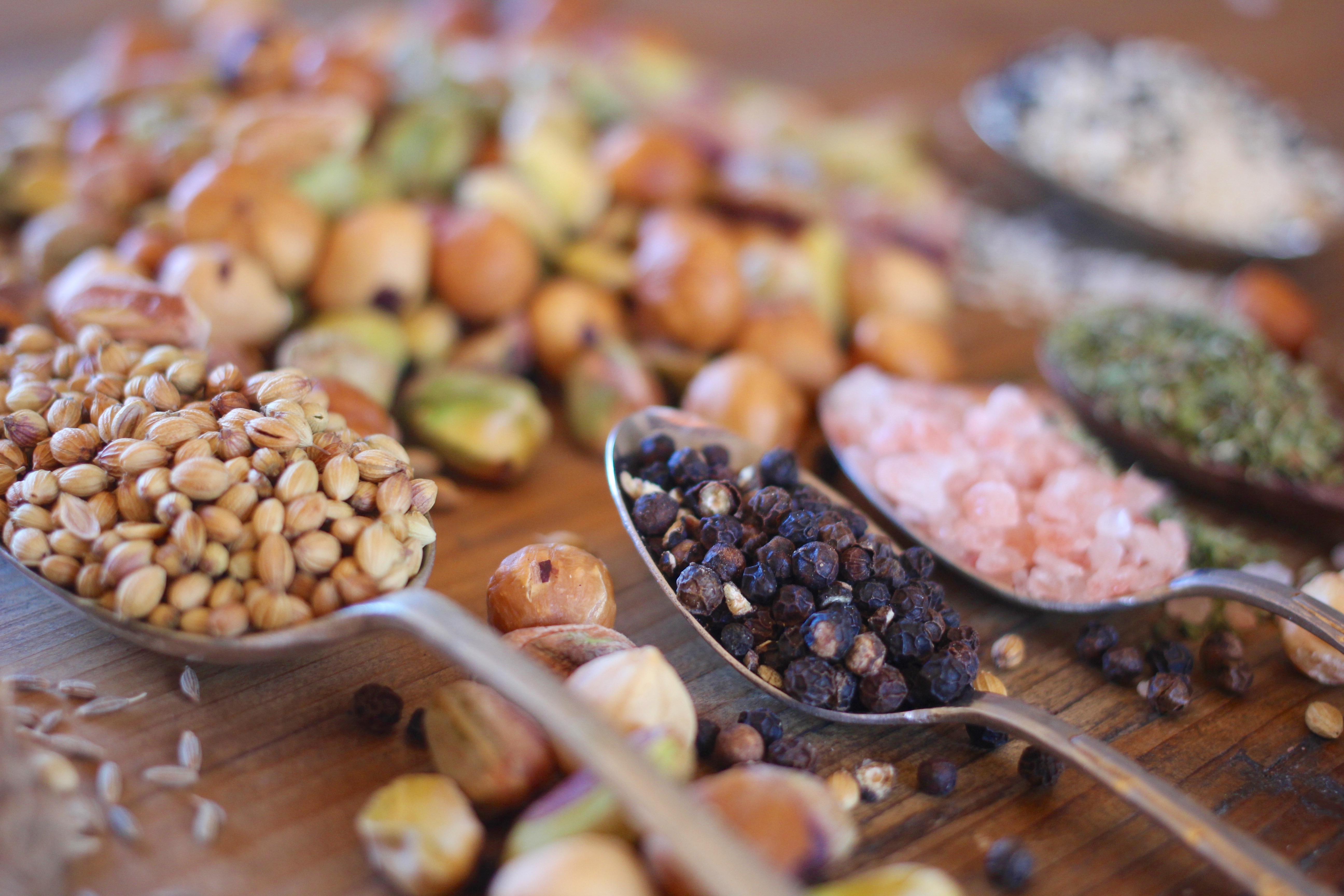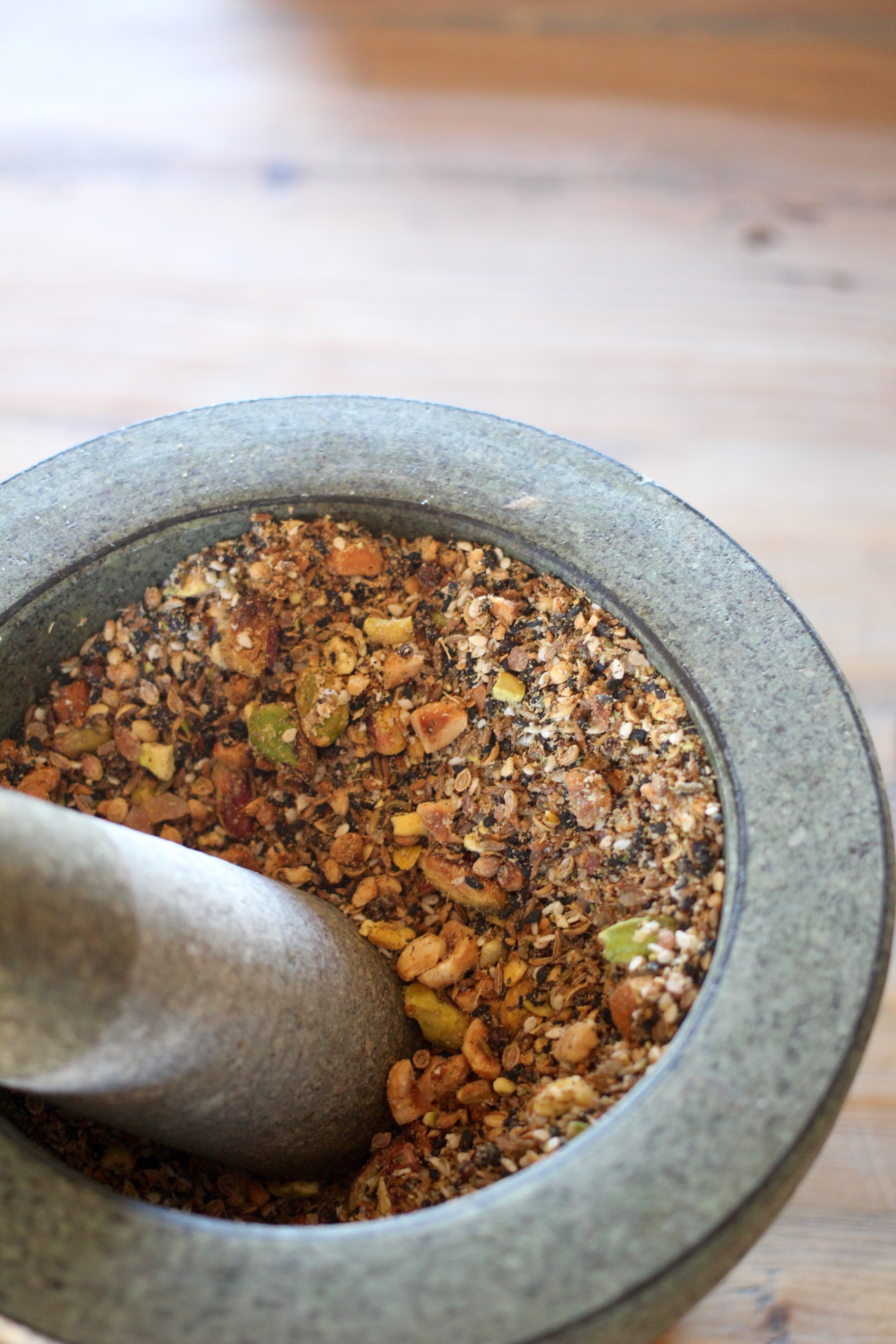 And now, without further ado, dukkah. Dukkah is a beautiful spice mixture. It is fragrant and heady, complex and comforting. There are probably as many variations as there are makers of dukkah; the key is to get the right balance between the nuts and the spices so that it has both body and flavour. After trial and error, this is the version that I love best. I do still play around with it – a touch of lemon zest, some dried hot chilli, a pinch of thyme – but the recipe below is a great base.