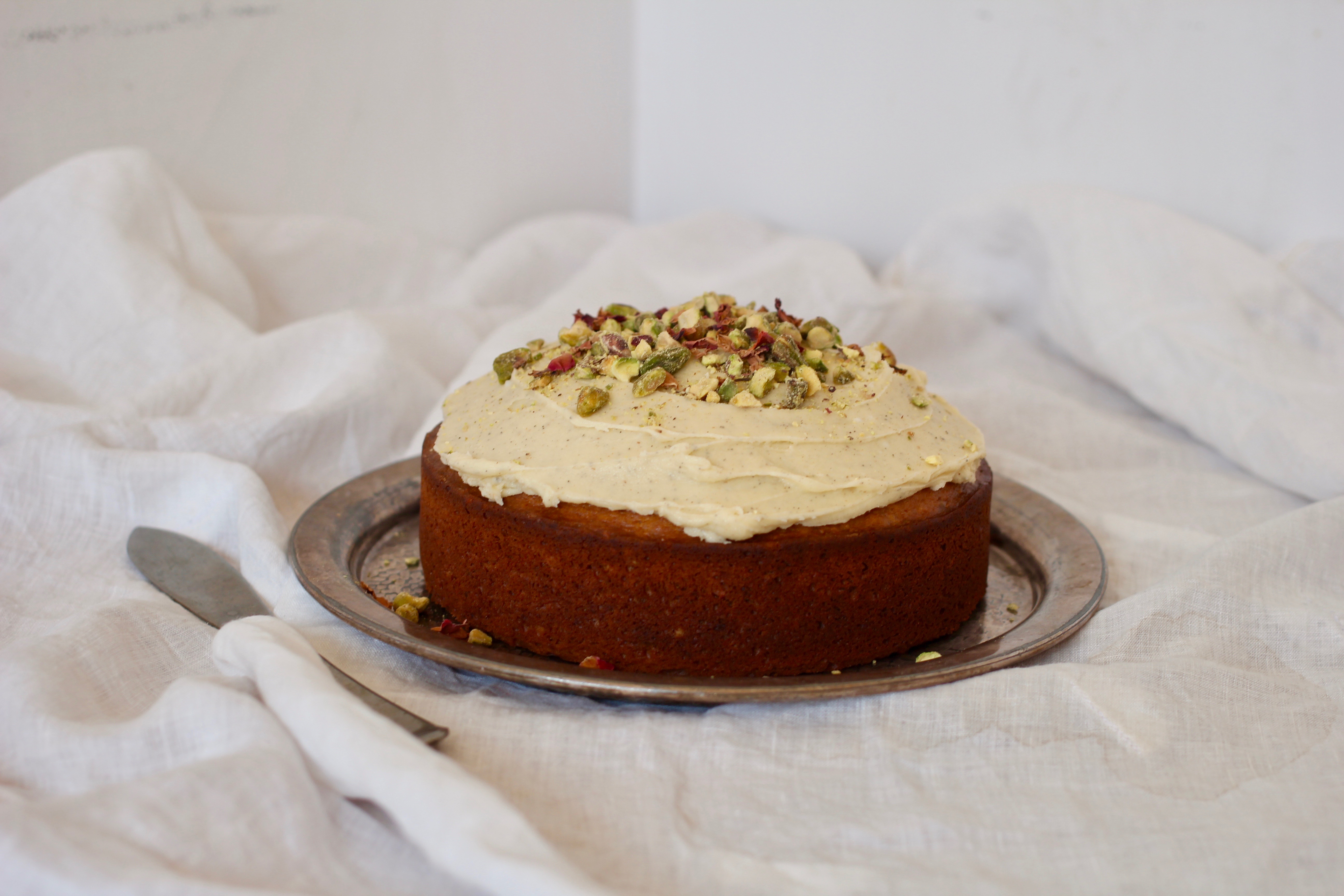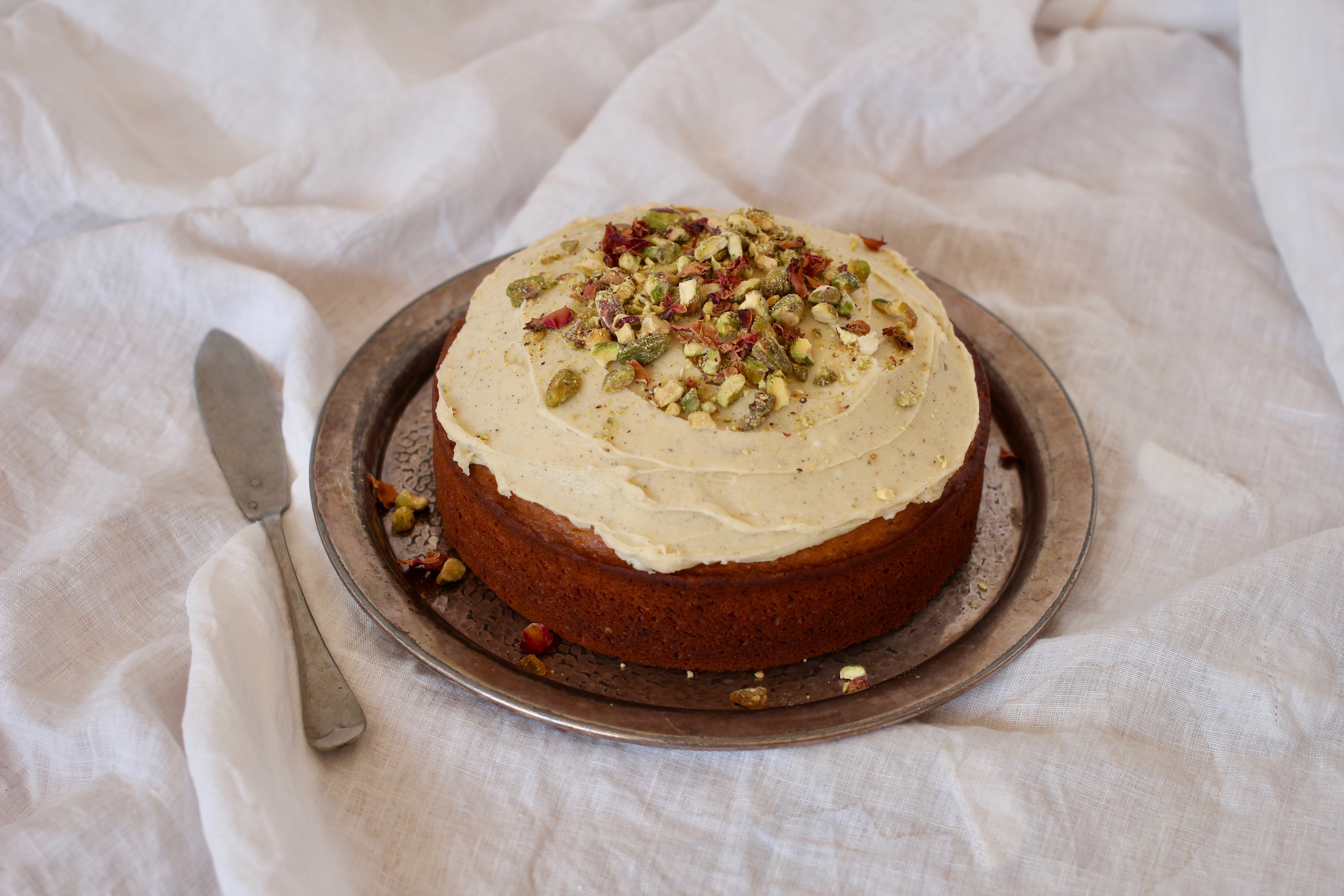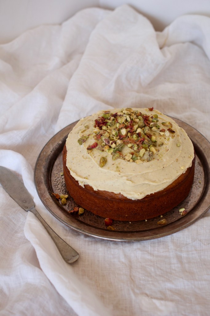 Pistachio & Rosewater Cake with Cardamom Frosting