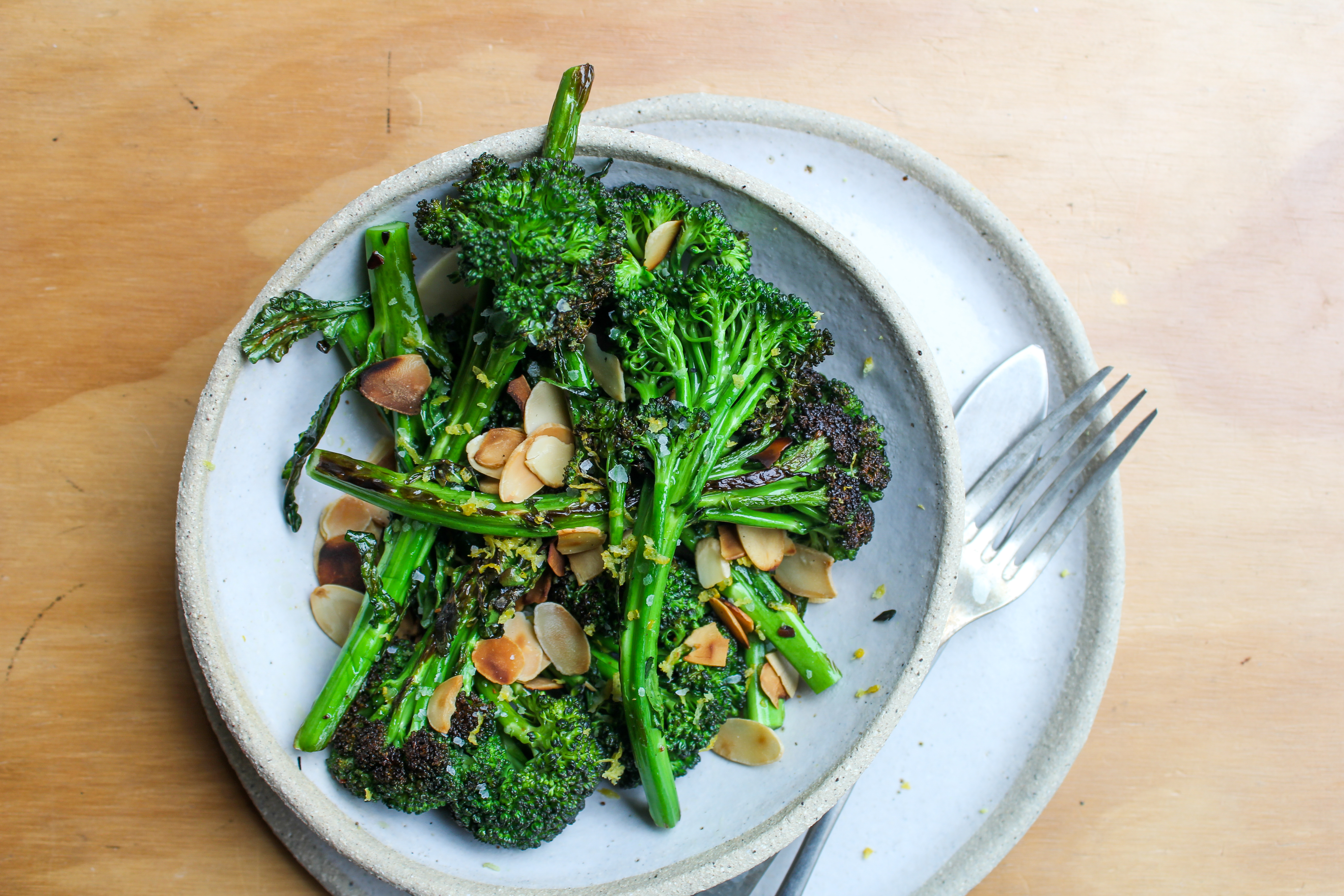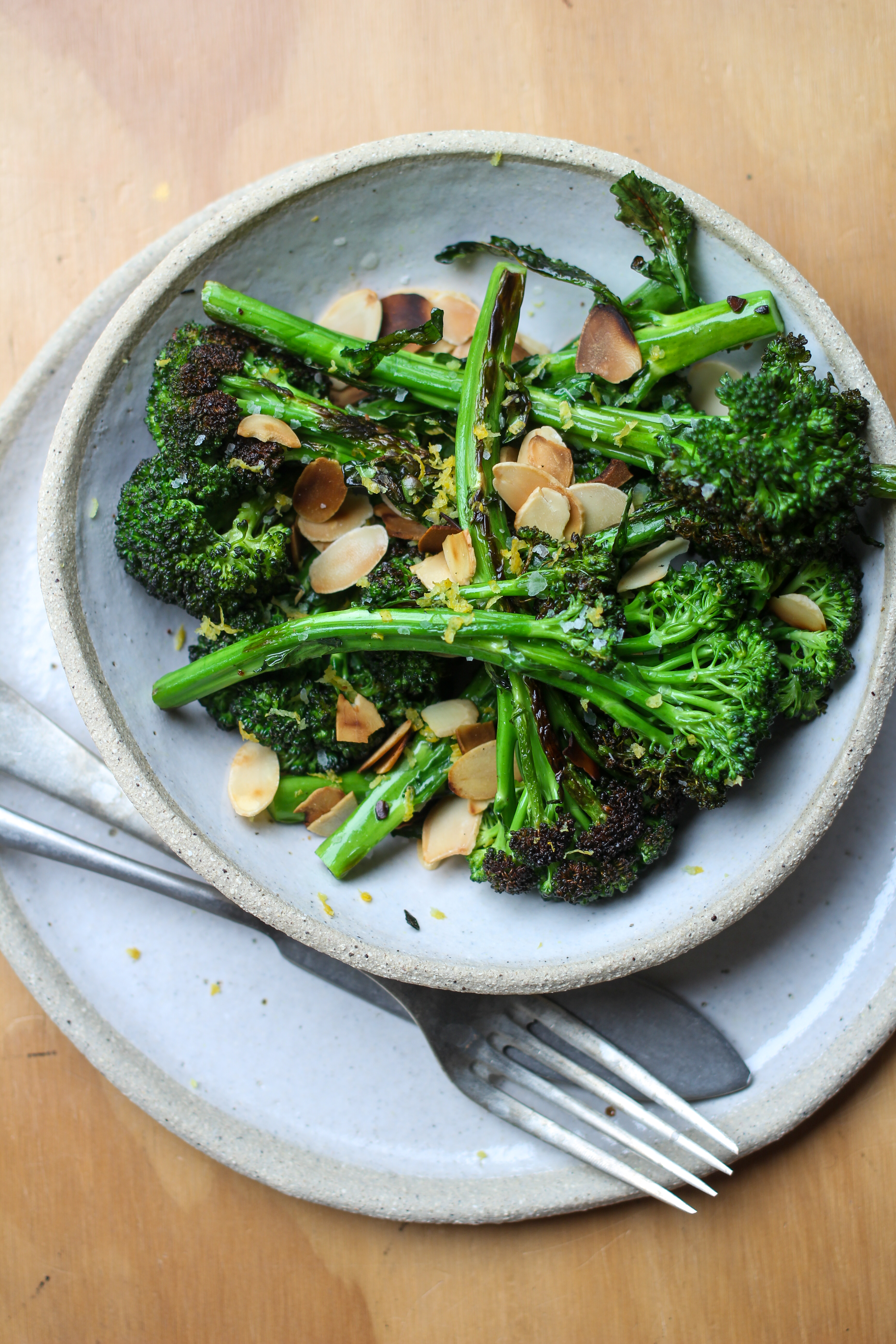 Transfer to a shallow bowl and toss with the lemon zest, almond flakes, chilli flakes (if using) and a generous pinch of sea salt. Eat immediately.