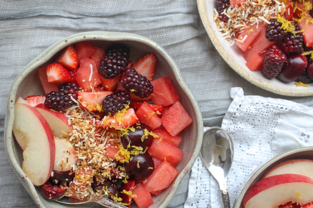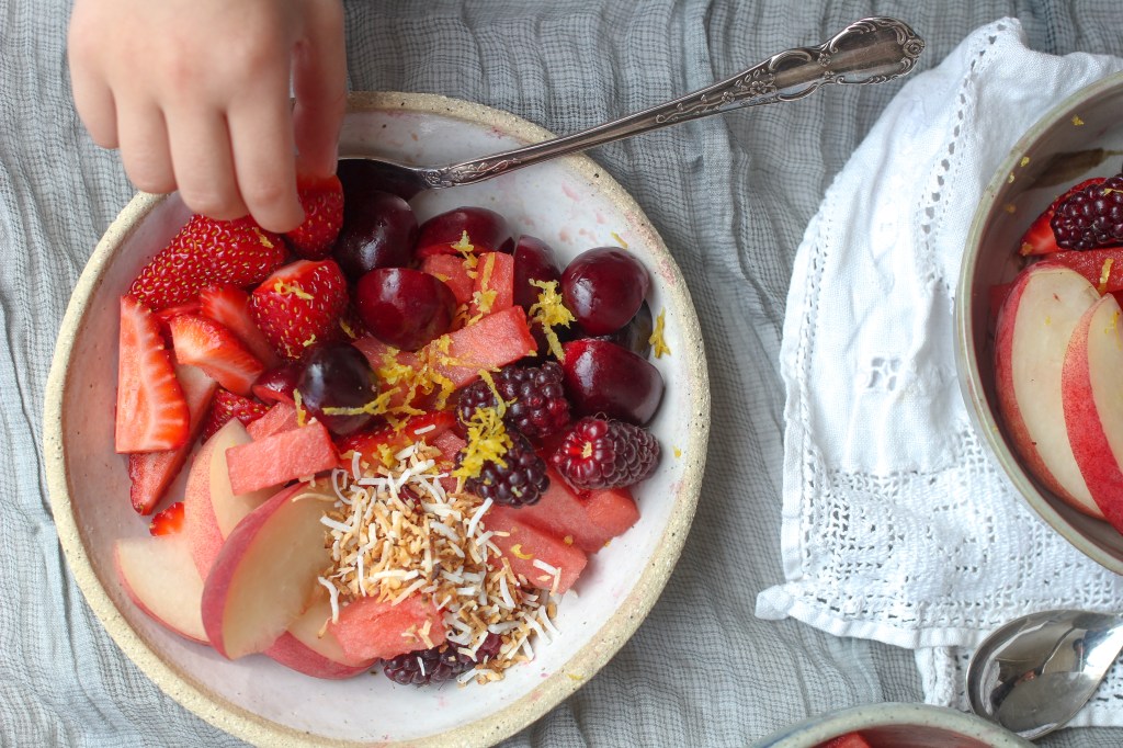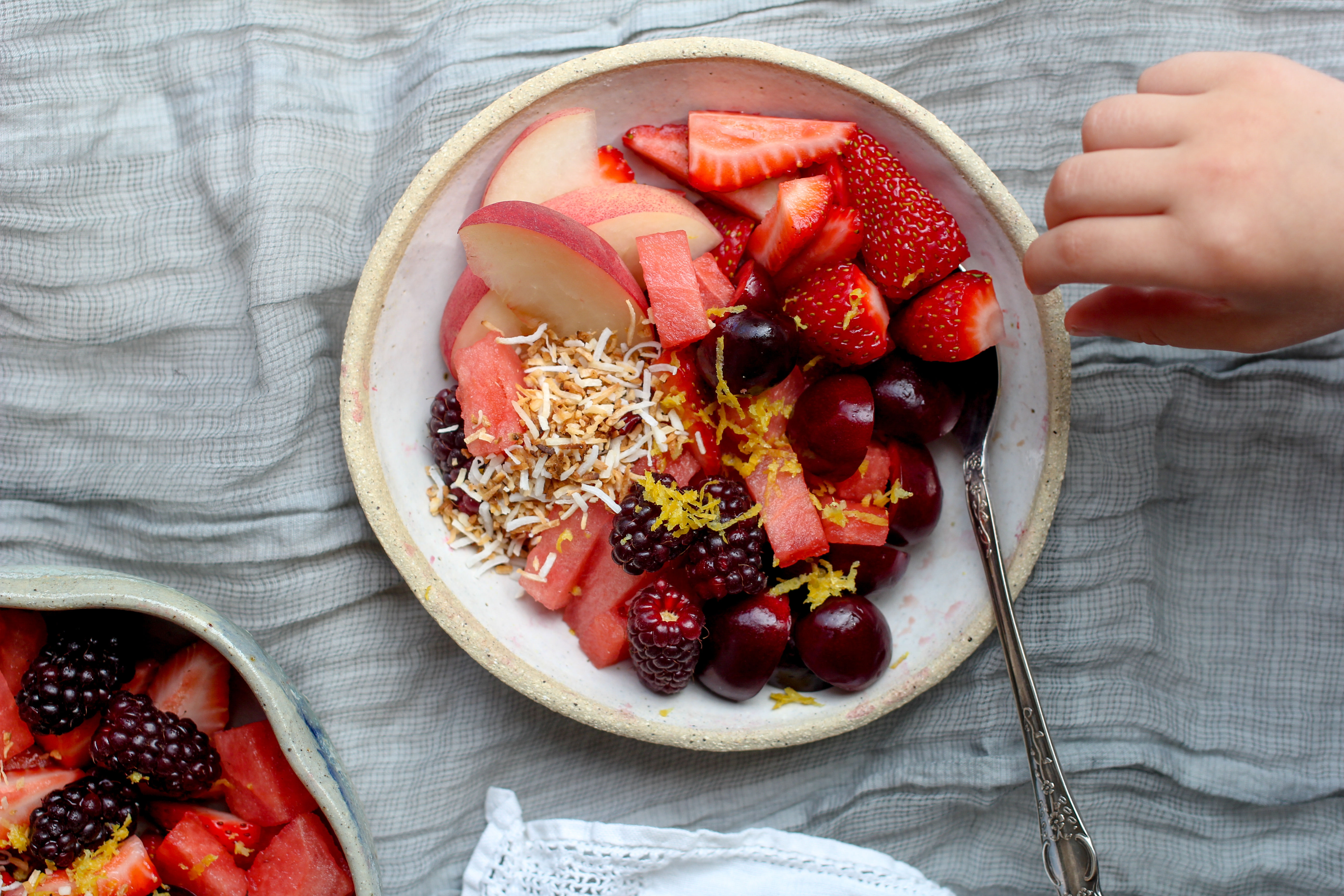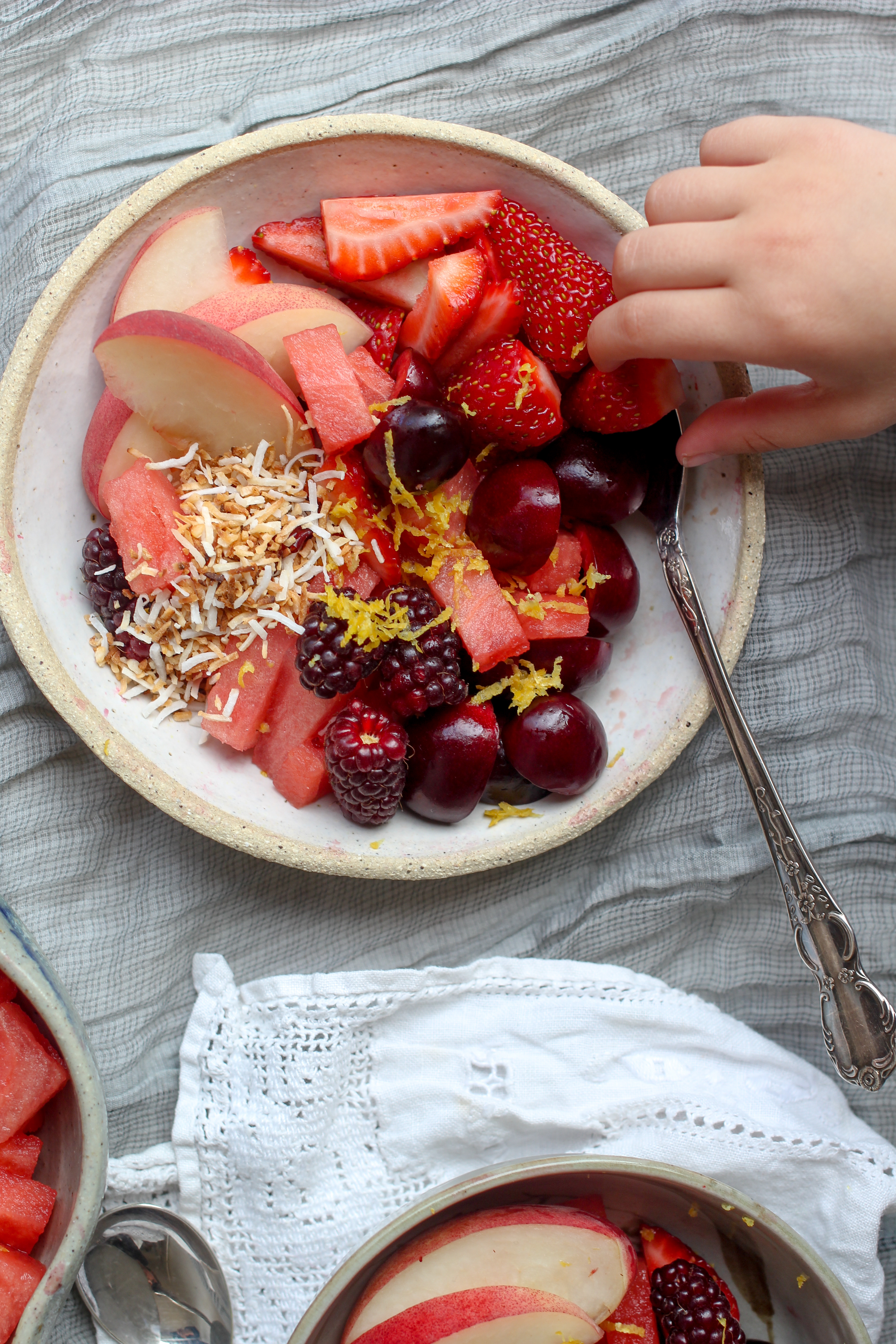 (and as you can see by the small hands sneaking into the frame, this fruit salad is popular with kids!)