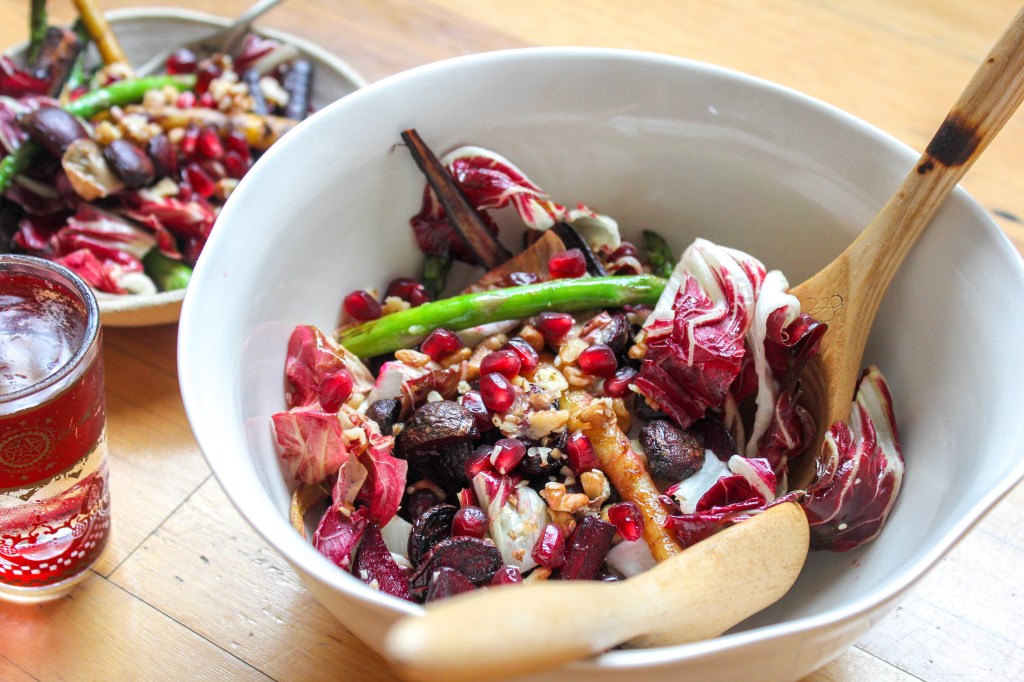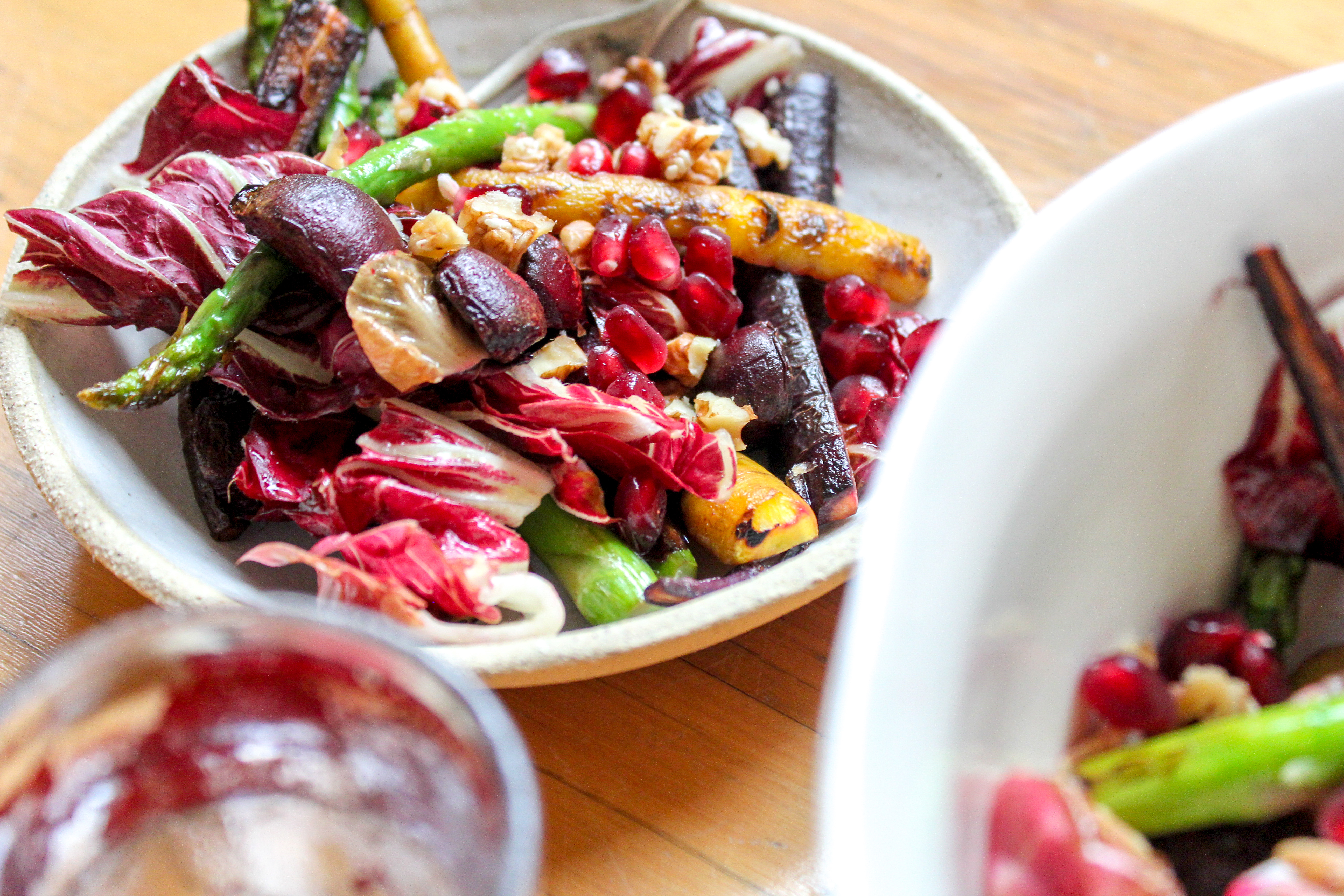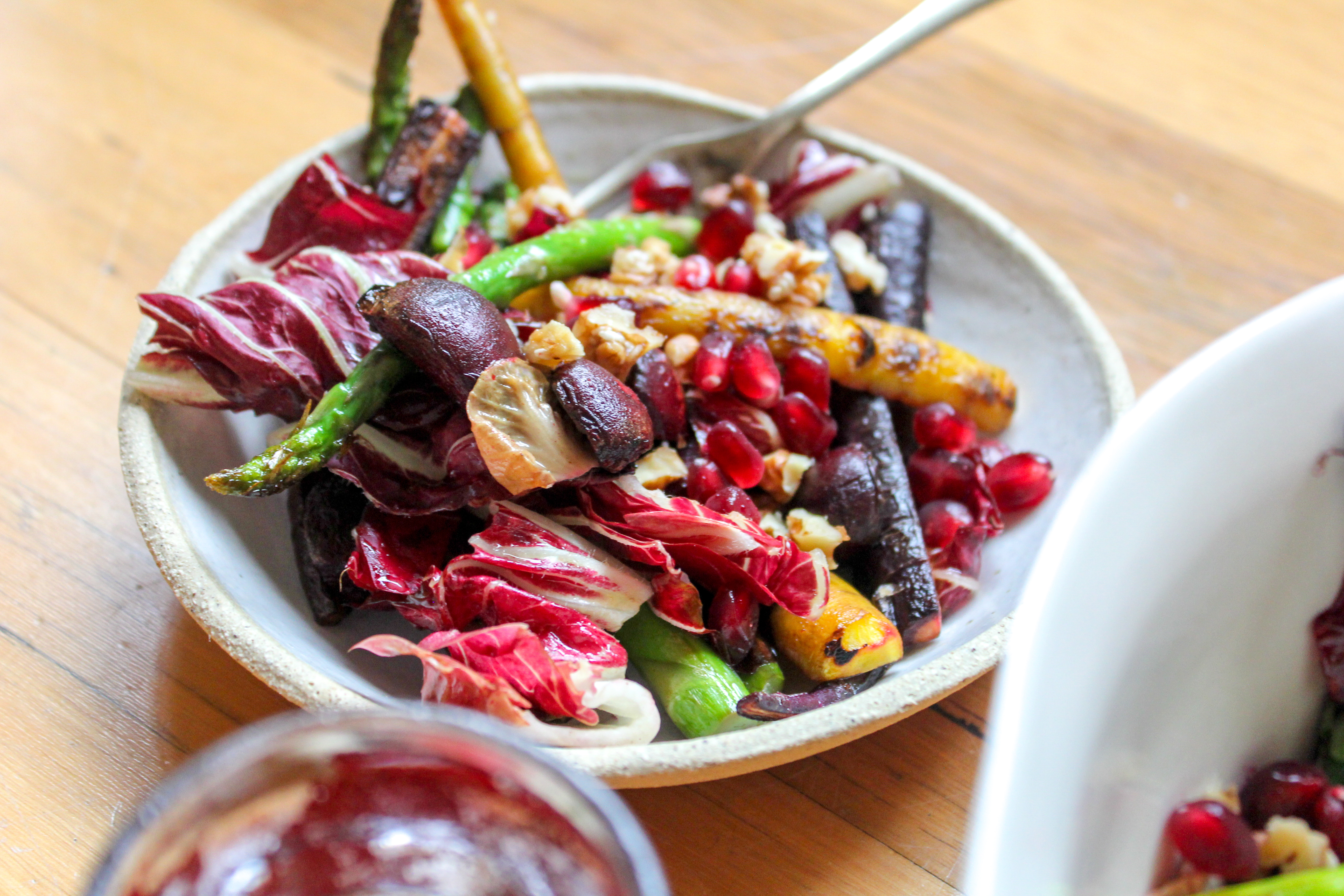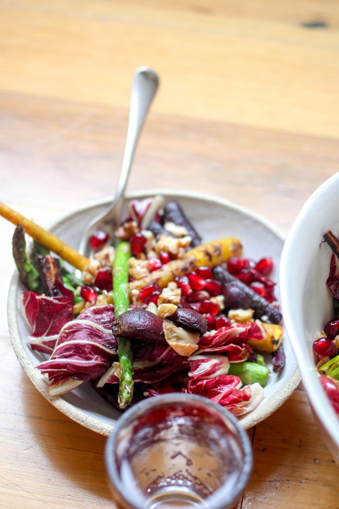 This recipe is forgiving – exchange the asparagus stalks for green beans or snow peas, use rocket instead of radicchio, roasted almonds instead of walnuts – you get the idea! The one key is to use fresh, seasonal ingredients. And if you’re not vegan, some shaved parmesan or manchego is a lovely addition.
